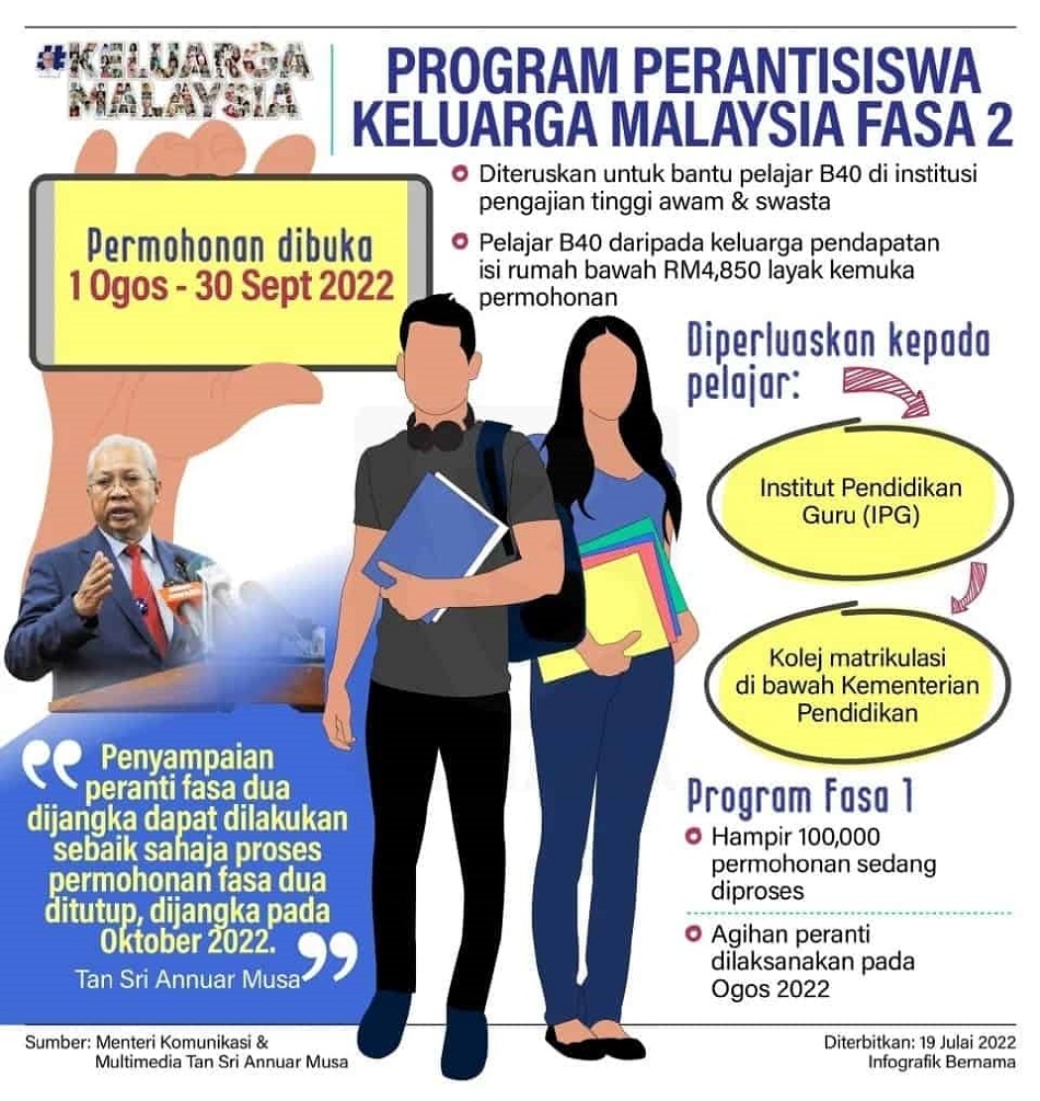 Kementerian Komunikasi dan Multimedia Malaysia (K-KOMM) membuat keputusan membuka sekali lagi permohonan PerantiSiswa Keluarga Malaysia bermula 1 Ogos hingga 30 September ini.Maklumat Lebih Lanjut tarikh terima boleh rujuk artikel terkini di bawah