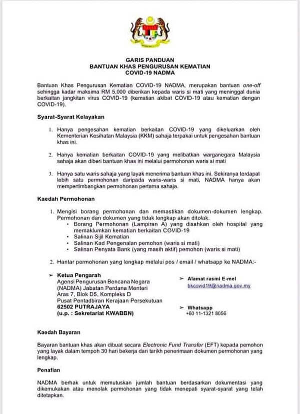 Boleh juga baca: Cara Memohon Bantuan Khas Pengurusan Kematian Covid-19 NADMA